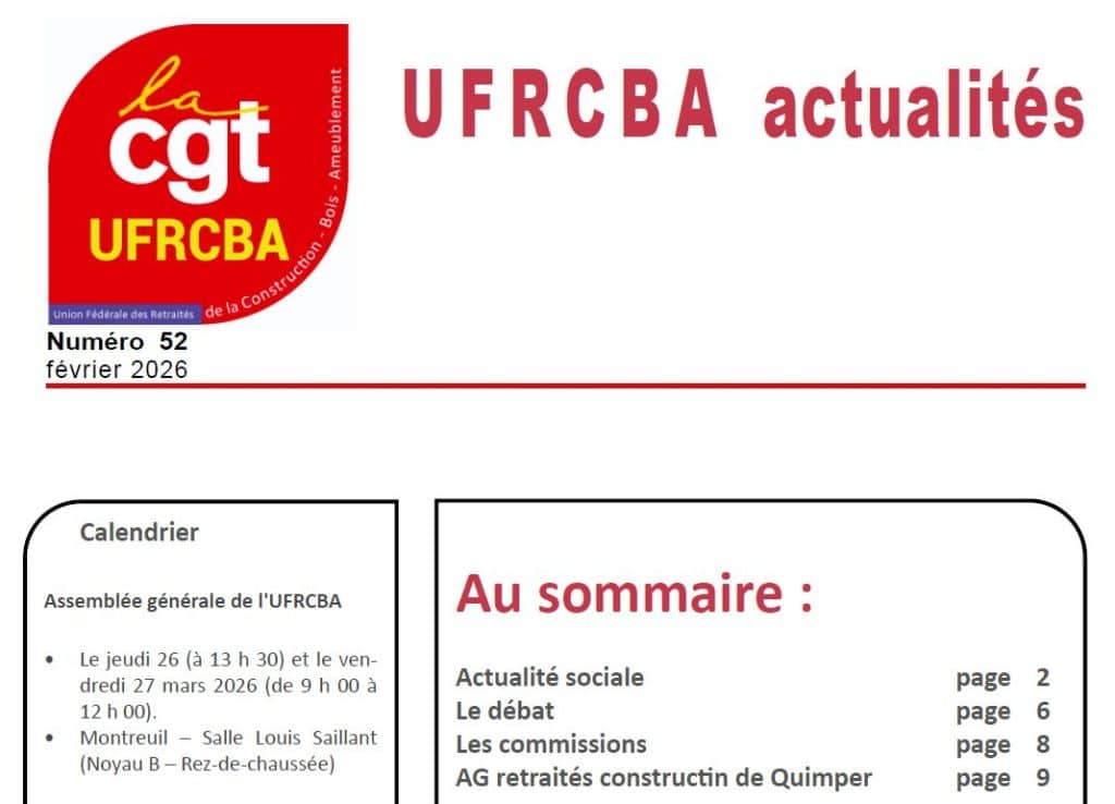 A l’affiche La lutte paye !La CGT condamne l’agression des États-Unis contre le VénézuélaRCBA 113 – janvier 2026UFR Actualités n° 51 – décembre 2025La FNSCBA soutient Sophie BinetLes rats quittent le navire